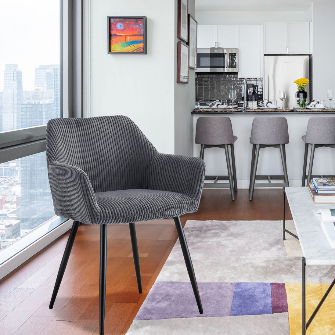 Home Assentos Cadeira - Rochelle Cadeira - Rochelle SKU: ROCHELLE Cor VERDE AZUL CINZA CINZA ESCURO 119,00 € Desconto de %. Comprar Contactar Adicionar à wishlist Dimensões: 58x55x82cm Cores disponíveis:azul, cinza escuro, cinza e verde. PRODUTO SOMENTE POR ENCOMENDA, VENDIDO EM CONJUNTOS DE 2 UNIDADES. Partilhar