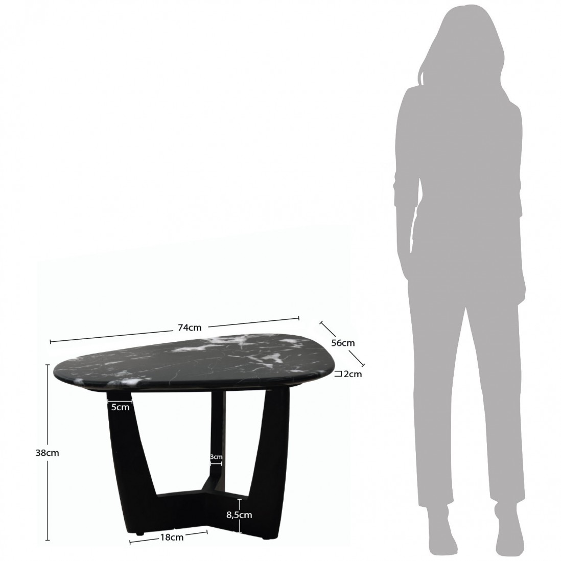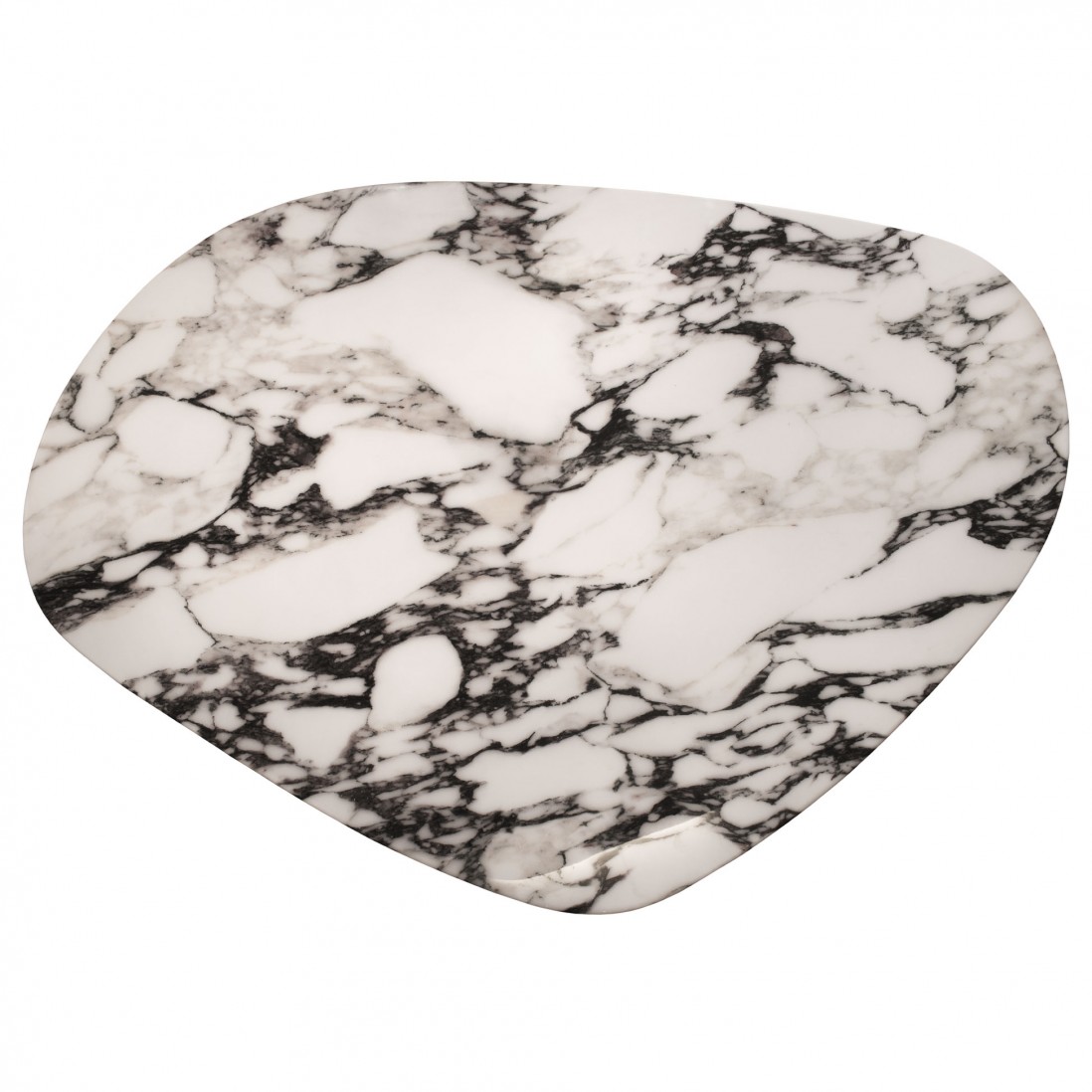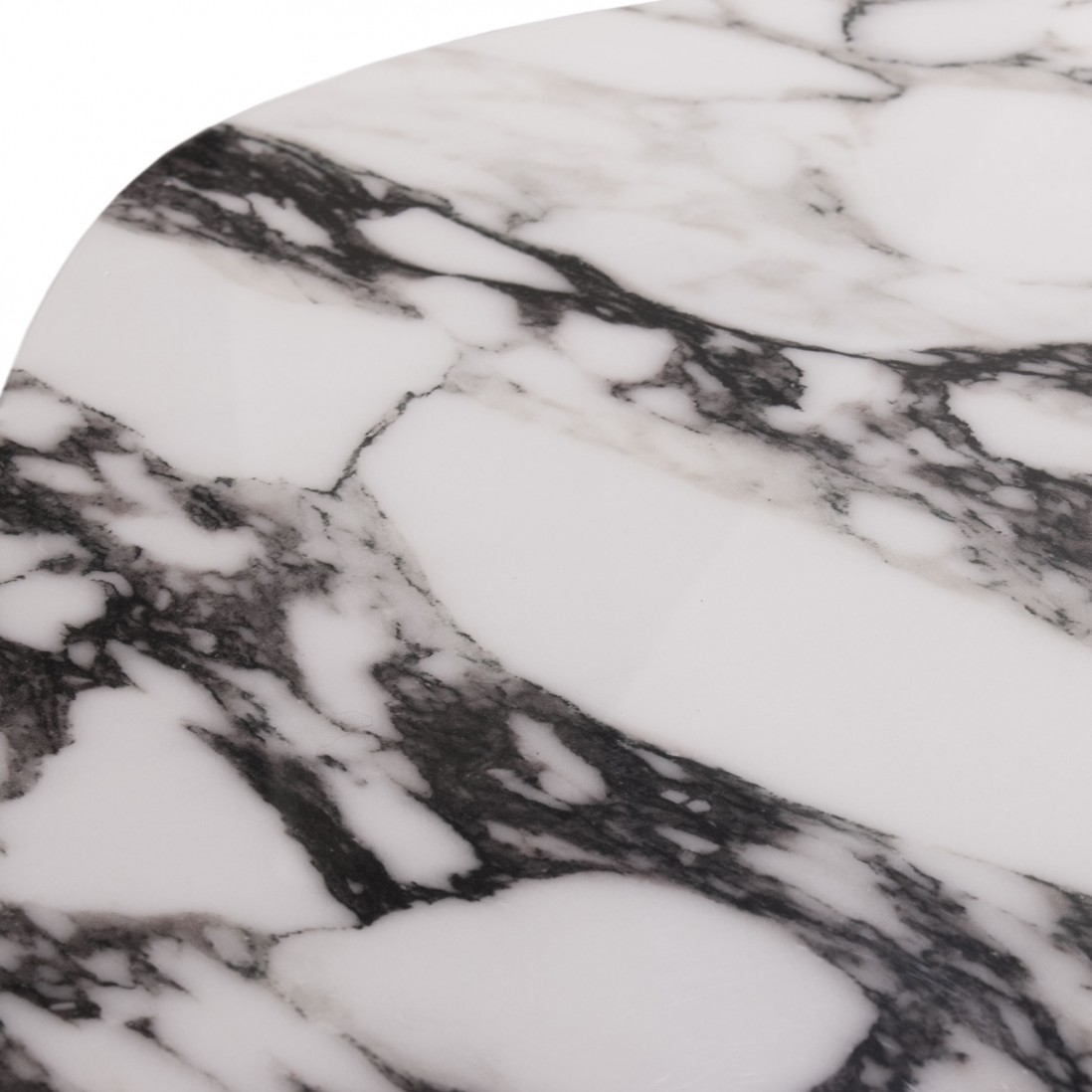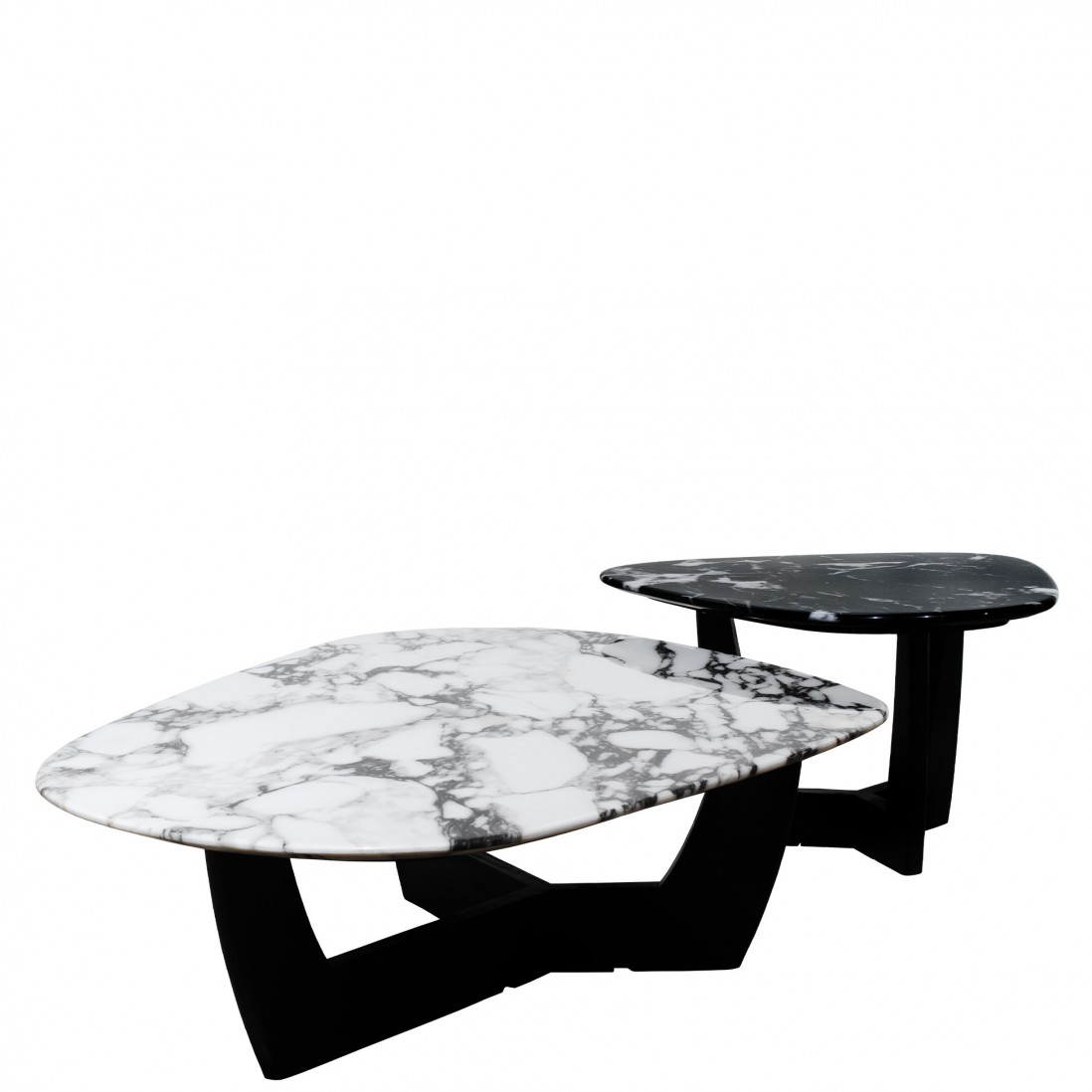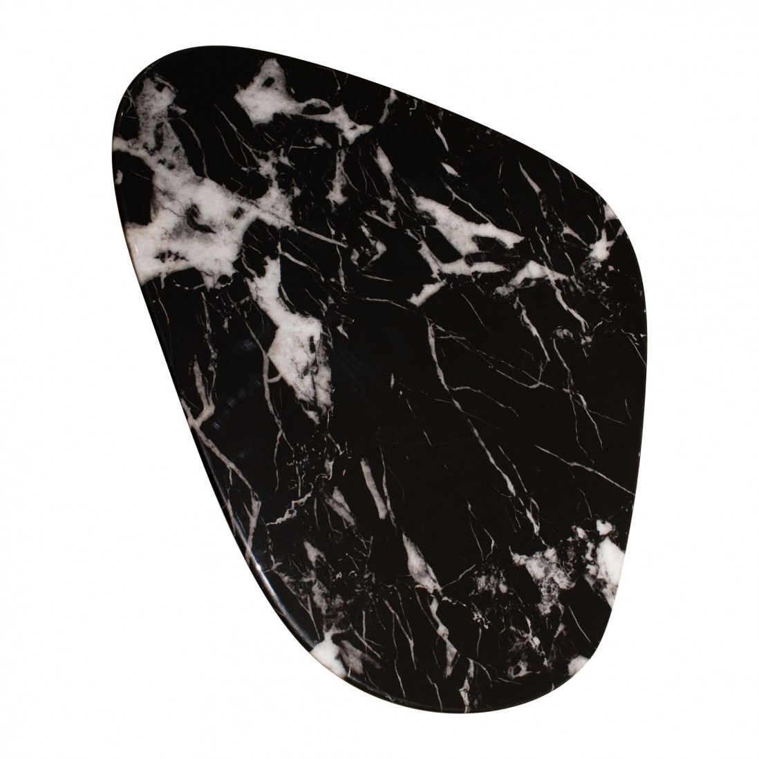 A mesa de centro Hydra, na sua versão preta, é um exemplar de sofisticação e design moderno. O tampo é feito de um compósito de pedra na cor preta com intrincados veios brancos que percorrem toda a superfície, emprestando um visual elegante e dramático ao conjunto. O formato do tampo, fluido e orgânico, desafia as convenções, proporcionando um toque de modernidade e singularidade a qualquer ambiente.