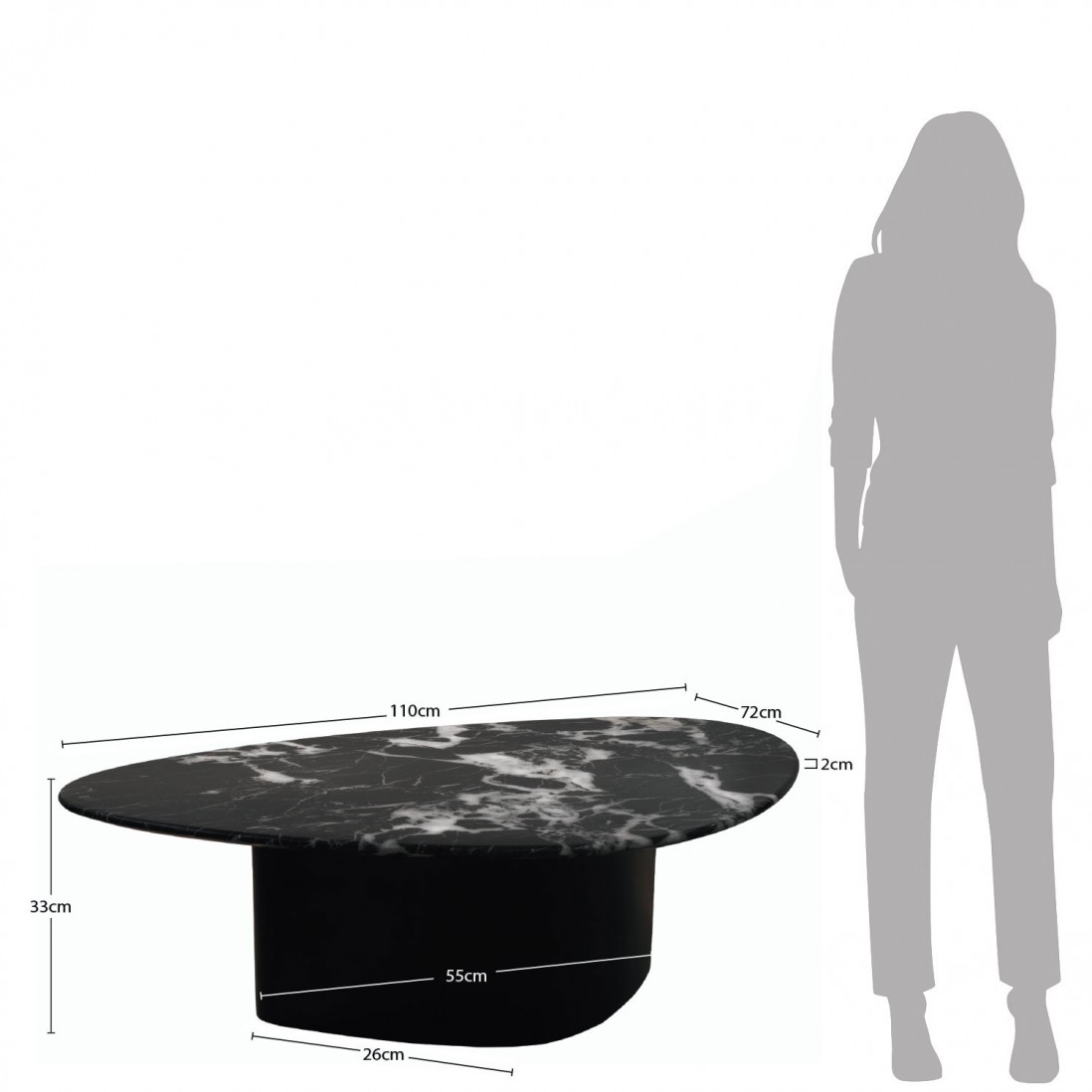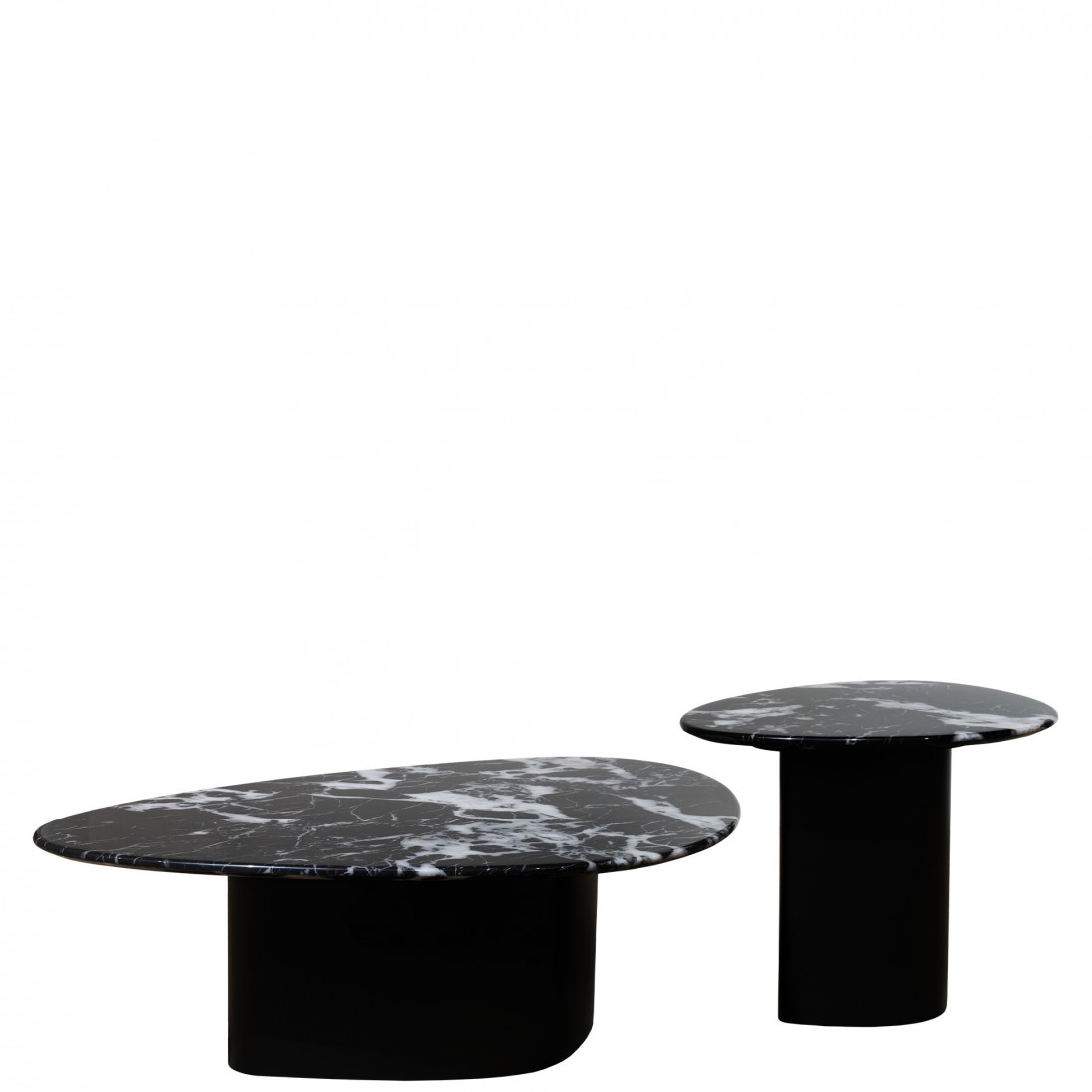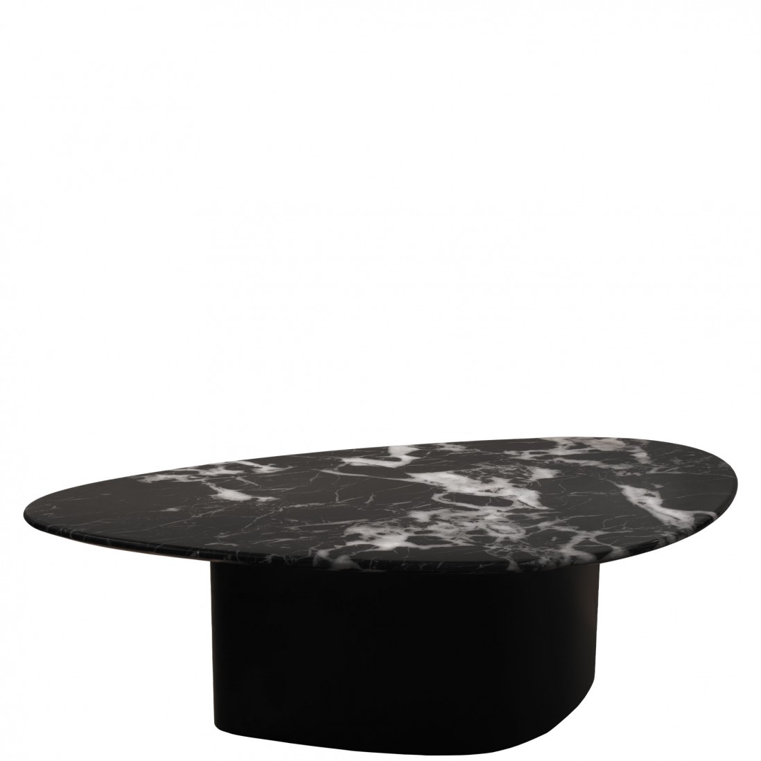 Descubra a mesa de centro Lepus, onde o design contemporâneo encontra a elegância intemporal. O tampo da mesa é feito de um compósito de pedra, exibindo um padrão de mármore preto com veios brancos que capturam a luz e o olhar, criando um ponto focal sofisticado em qualquer sala de estar. O tampo destaca-se também pelo seu formato irregular, com uma forma fluida e assimétrica traz uma dinâmica visual surpreendente, tornando cada ângulo da mesa único.