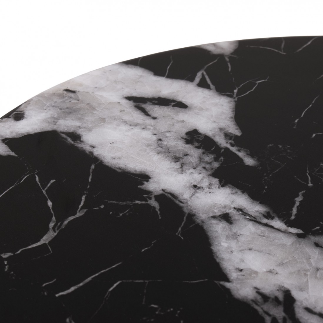 A base da Lepus contrasta de forma sublime com o tampo, pois é fabricada em aço carbono, pintado de preto para complementar as tonalidades escuras do mármore artificial. Esta combinação não só assegura estabilidade e durabilidade como também acrescenta uma dimensão visual harmoniosa à peça, equilibrando a leveza visual do mármore com a solidez do aço carbono.