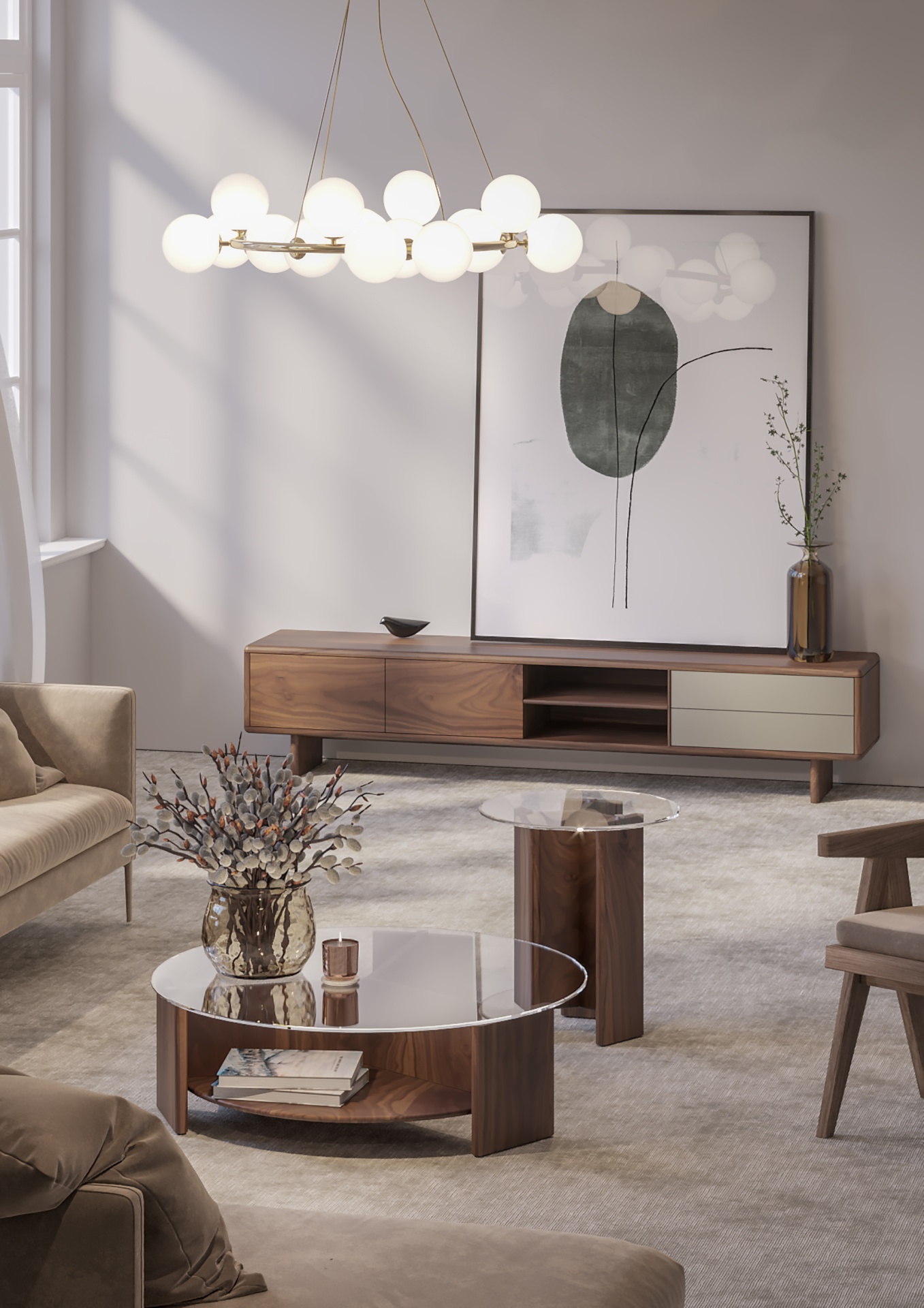 Versão 2 portas de correr e 2 gavetas: 210x40x45cm