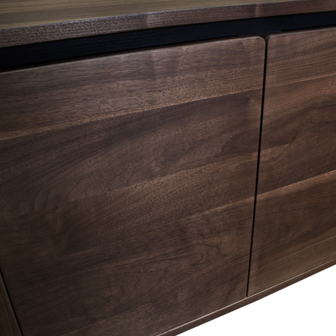 O móvel de TV Pegasus, da Sky Collection, combina elegância e funcionalidade, ideal para ambientes contemporâneos. Desenvolvido em madeira de nogueira, reconhecida pela sua tonalidade escura e calorosa que confere um ar sofisticado e acolhedor ao espaço, este material é apreciado pela sua resistência e pelos veios marcantes, que acrescentam uma riqueza visual e um toque de luxo ao design do móvel. As portas sem puxadores visíveis garantem um visual limpo e harmonioso, integrando-se perfeitamente na estrutura.