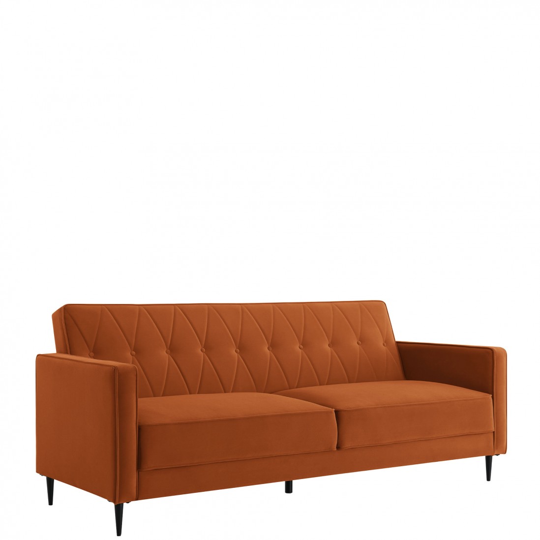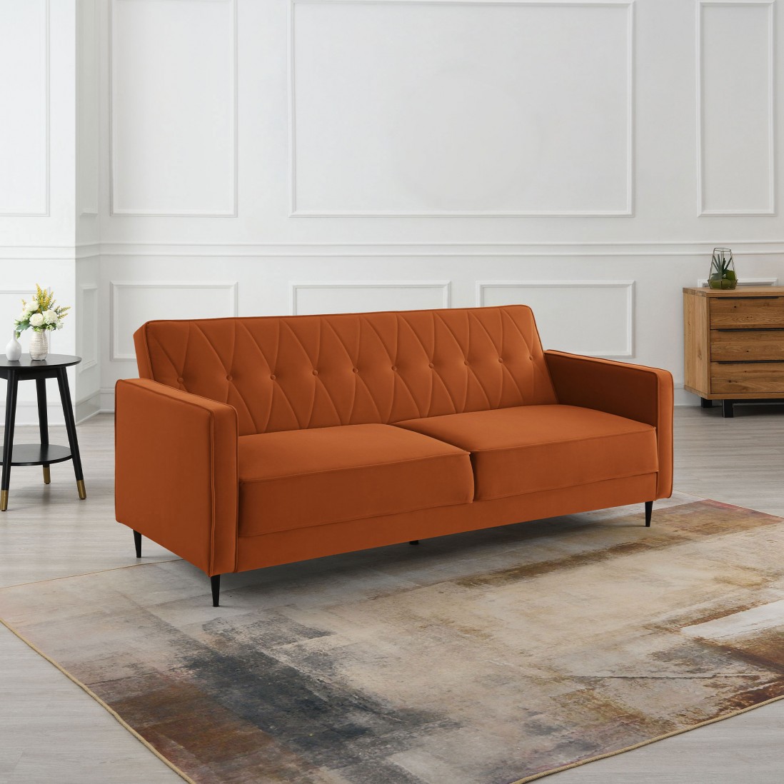 O sofá Lima destaca-se pela sua versatilidade e elegância intemporal. Com uma estrutura revestida com tecido aveludado de cor laranja e suave ao toque, este sofá oferece uma experiência de conforto ímpar. As linhas retas e o design minimalista conferem-lhe um caráter moderno, capaz de se adaptar a qualquer decoração de interiores.